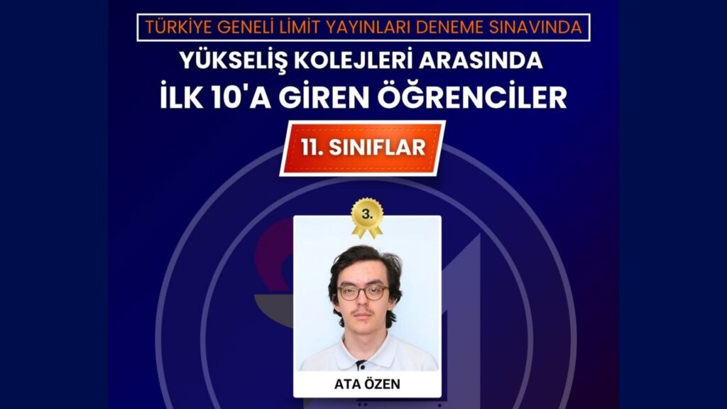 Türkiye geneli tüm Yükseliş Kolejleri arasında gerçekleştirilen deneme sınavında ilk 10’a girme başarısı gösteren 11. sınıf öğrencimizi tebrik ediyoruz!