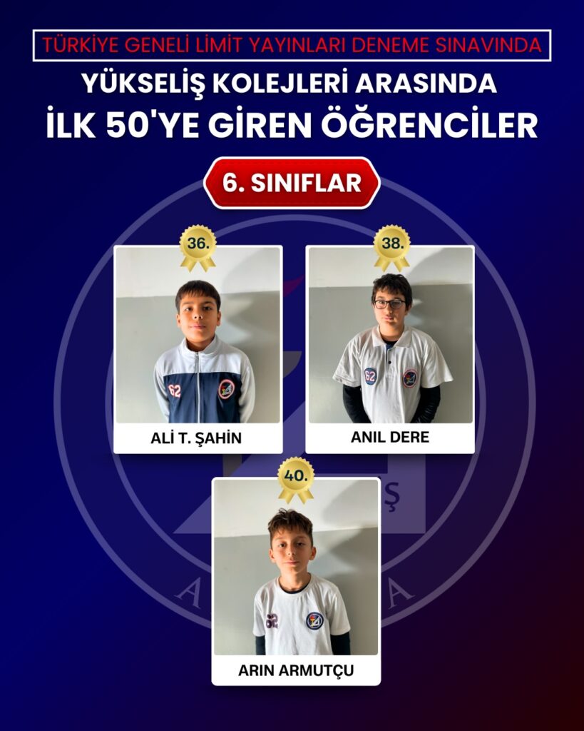Türkiye geneli tüm Yükseliş Kolejleri arasında gerçekleştirilen deneme sınavında ilk 50’ye girme başarısı gösteren 6. sınıf öğrencilerimizi tebrik ediyoruz!