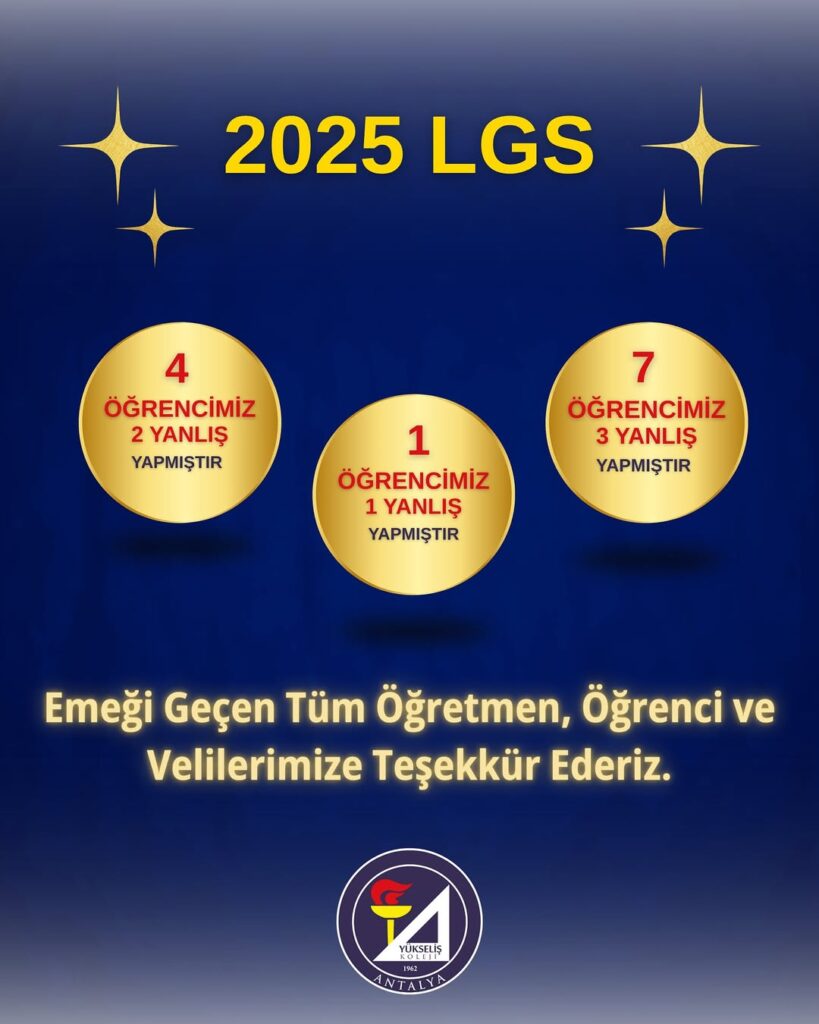 Yükseliş Koleji olarak başarıya giden yolda azimle yürüyen öğrencilerimizle gurur duyuyoruz! 🌟 🔹 1 öğrencimiz sadece 1 yanlış, 🔹 4 öğrencimiz yalnızca 2 yanlış, 🔹 7 öğrencimiz ise 3 yanlış ile sınavı tamamladı! Bu büyük başarıda emeği geçen başta öğrencilerimiz olmak üzere tüm öğretmenlerimize ve velilerimize teşekkür ederiz. 💙 🎓 Hep birlikte daha nice başarılara!