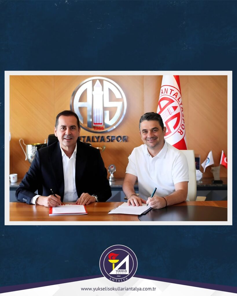 ✍🏻 Okulumuz, Antalyaspor ile iş birliği anlaşması imzaladı. Ali Özenç’in yönetim kurulu başkanı olduğu ÖZEL ANTALYA YÜKSELİŞ KOLEJİ, kulübün eğitim sponsoru olarak katkı sağlayacak. Sponsorluk anlaşması, Başkanımız Rıza Perçin ile Yönetim Kurulu Üyemiz de olan Özel Antalya Yükseliş Koleji Yönetim Kurulu Başkanı Ali Özenç tarafından imzalandı.