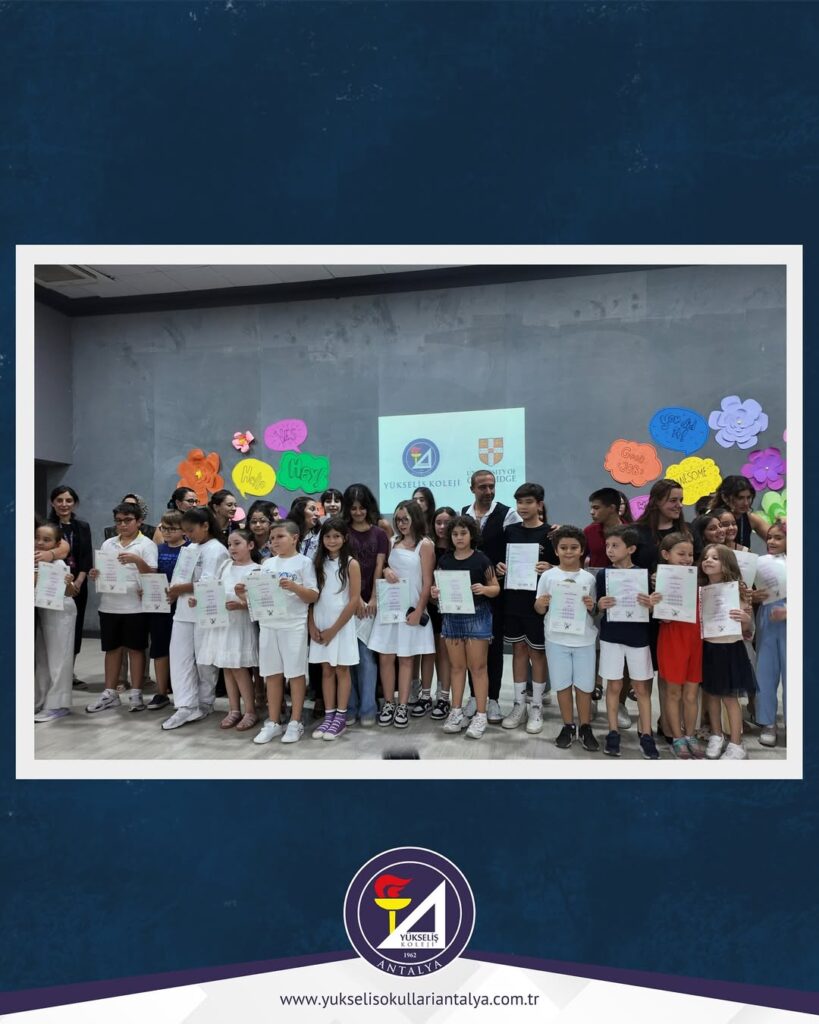 Cambridge sınav belgelerini teslim alan öğrencilerimizin heyecanına ve gurur dolu anlarına tanıklık ettik.