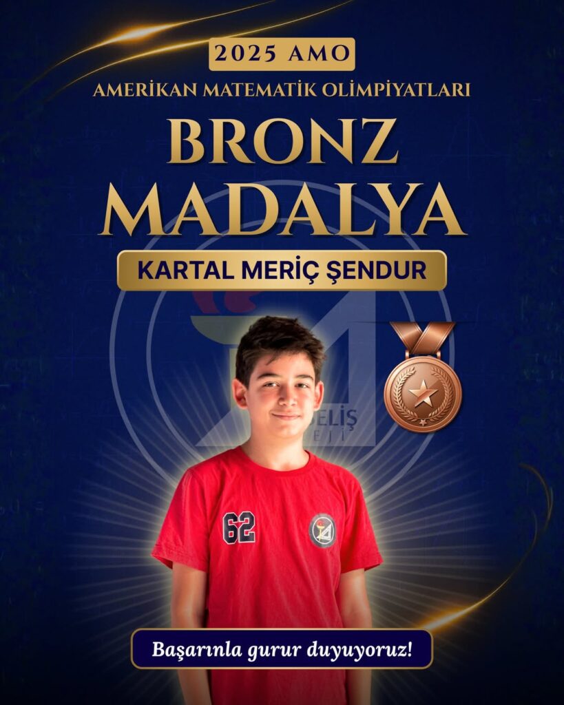 7.sınıf öğrencilerimizden Kartal Meriç Şendur, 2025 AMO (American Mathematics Olympiad) yarışmasında bronze madalya kazanarak hepimizi gururlandırdı.